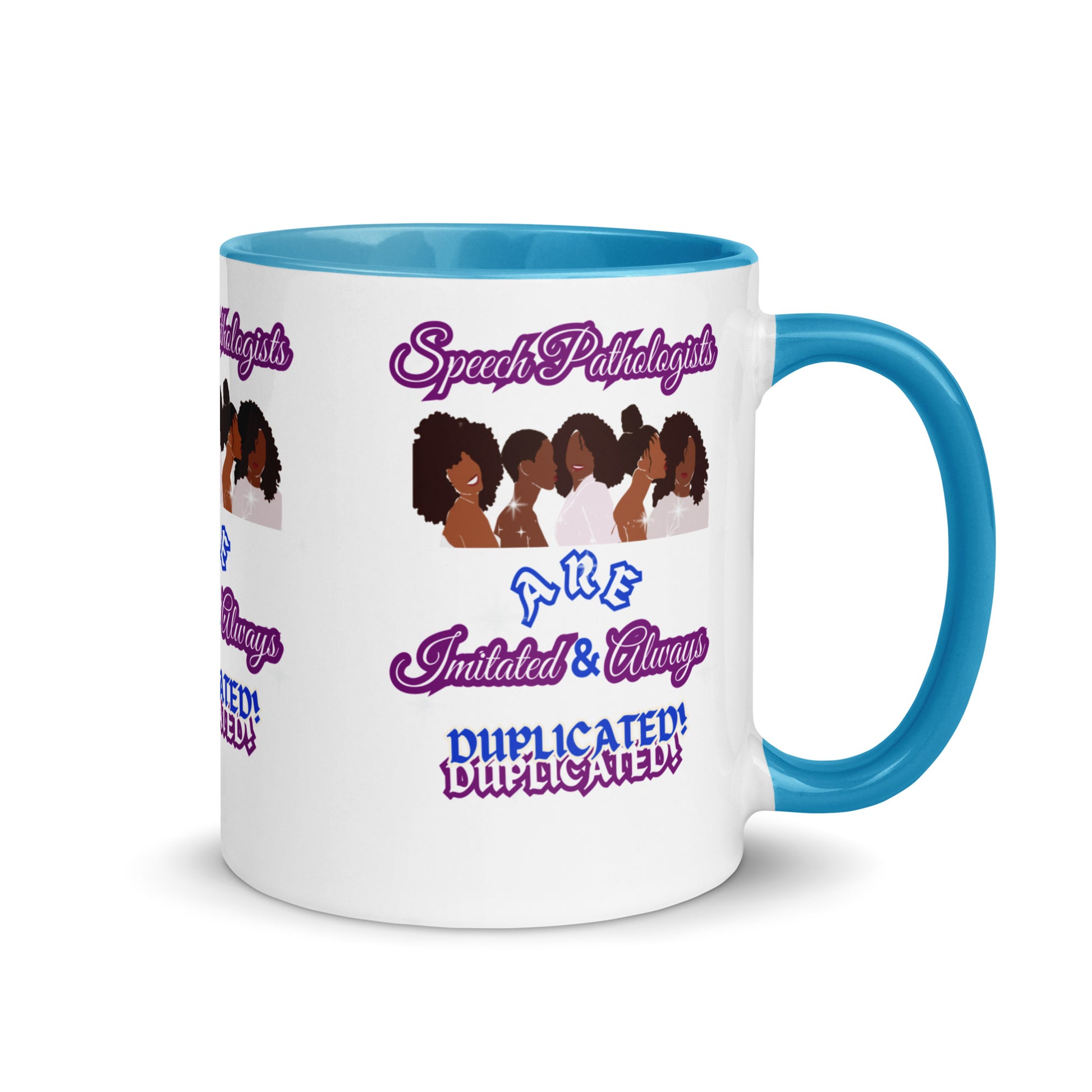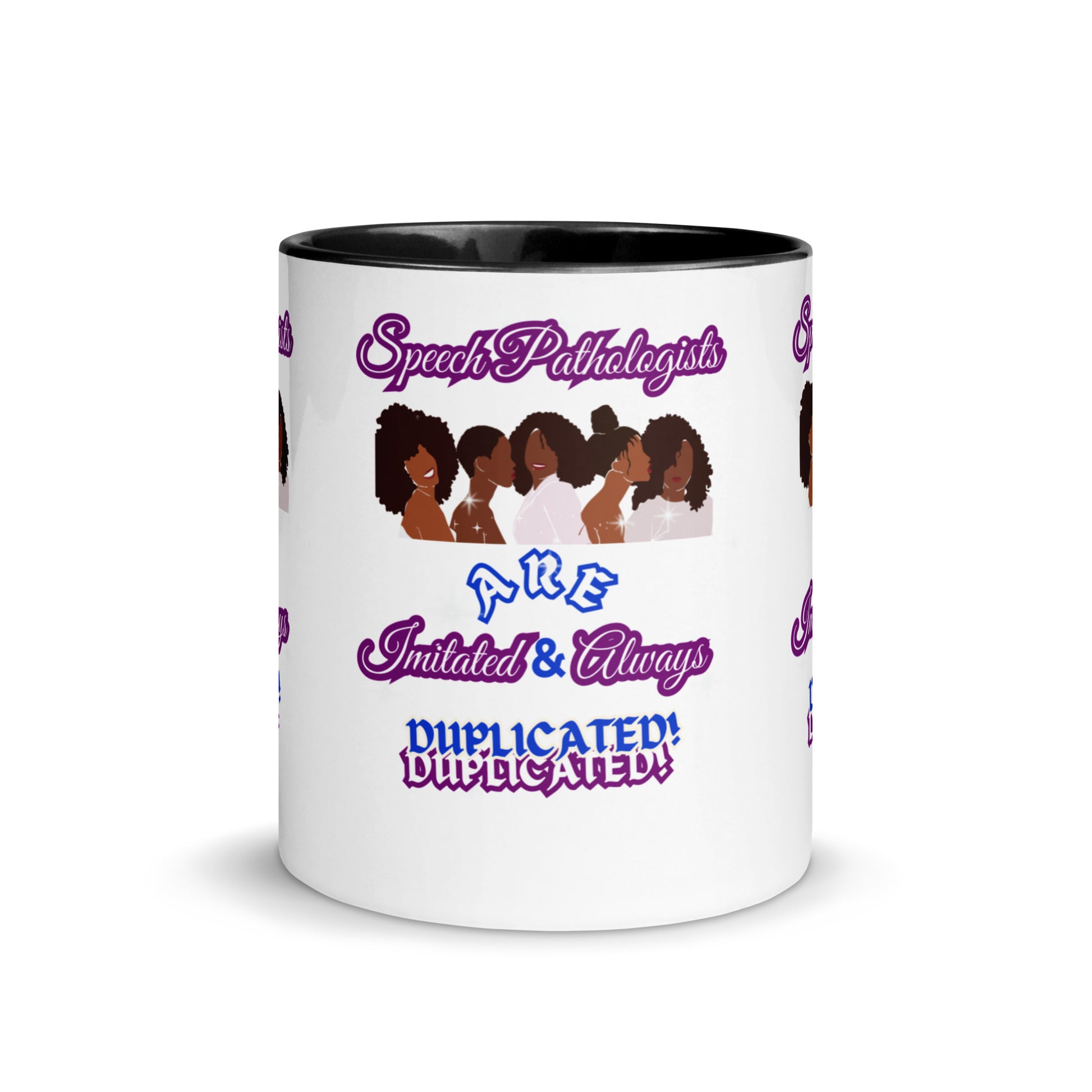 Add a splash of color to your morning Hot Chocolate or tea ritual! These ceramic (Ebony) Imitated and Always Duplicated mugs not only have a beautiful design on them, but also a colorful rim, handle, and inside, so the mug is bound to spice up your mug rack.