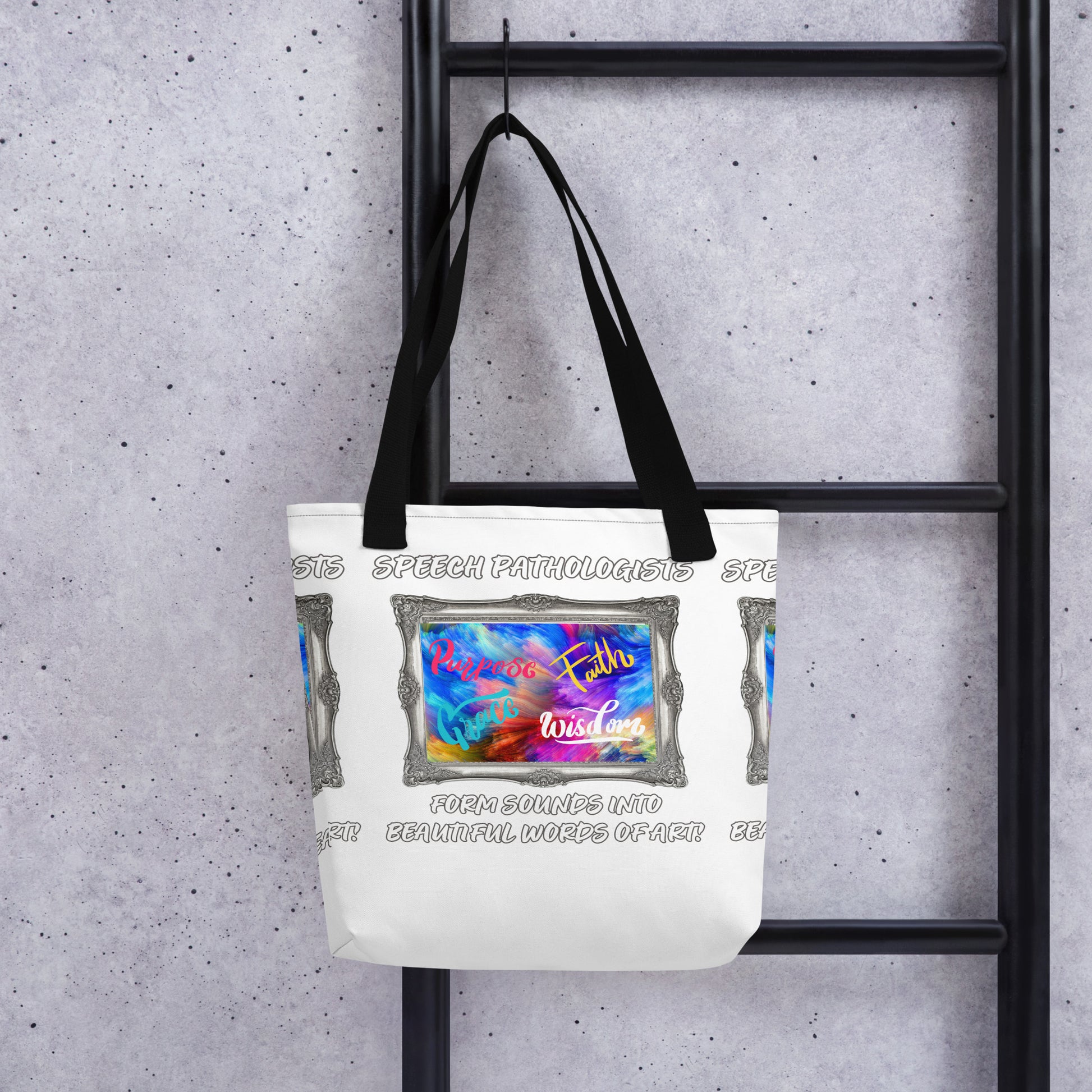Our incredibly functional Words of Art trendy tote bag is gorgeous in style and ample in space. This bag will help you carry around everything that matters.