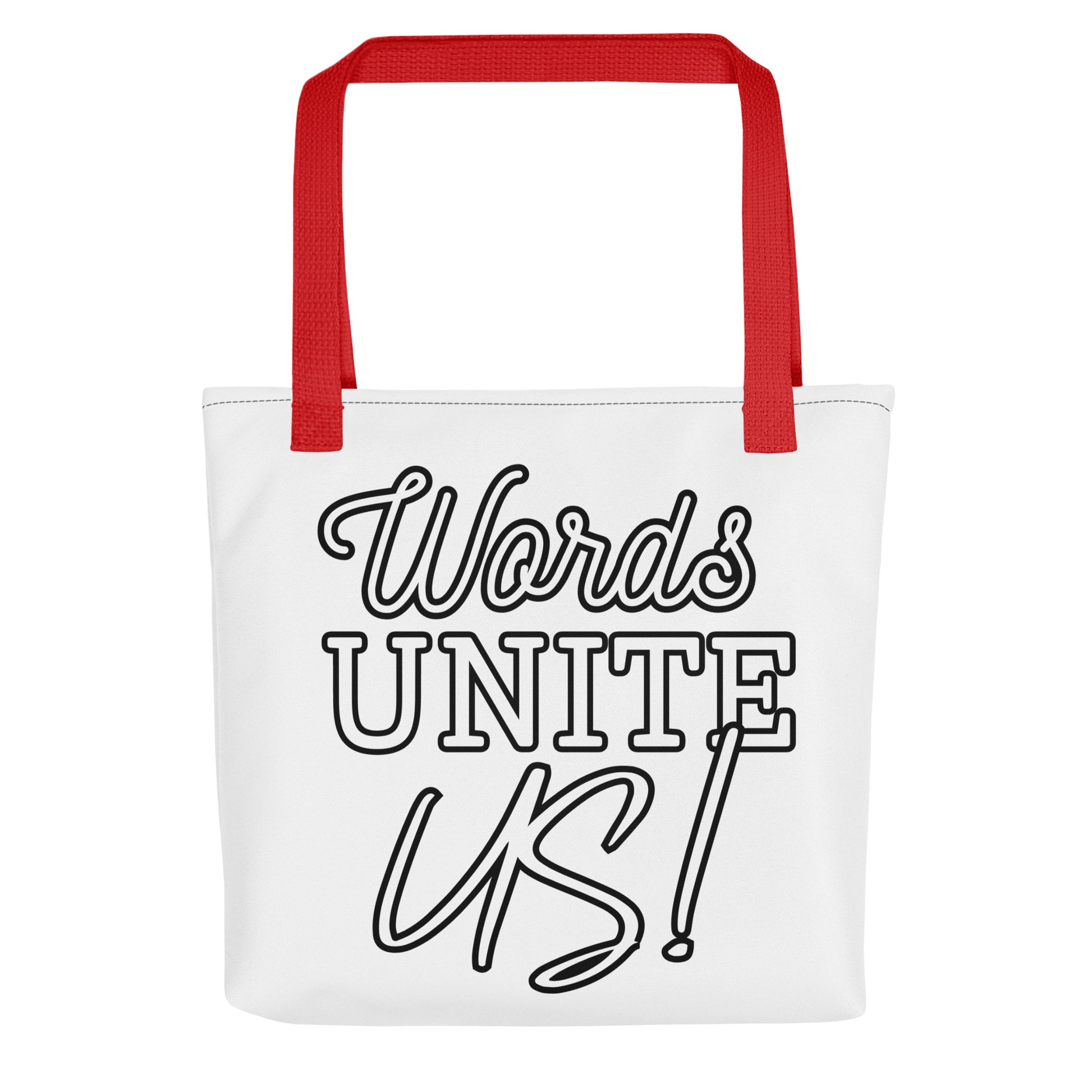 Words Unite Us is a spacious and trendy tote bag to help you carry around everything that matters.