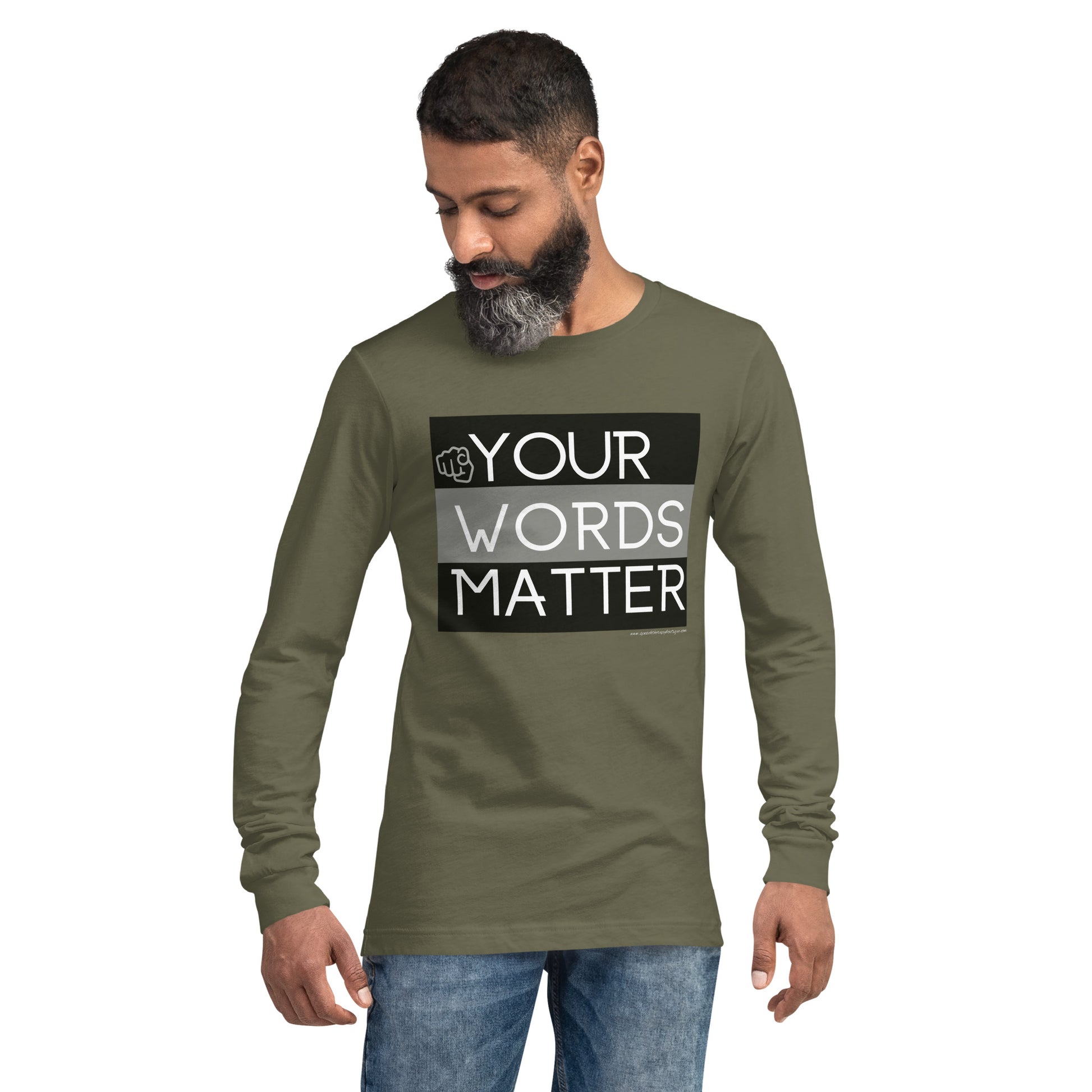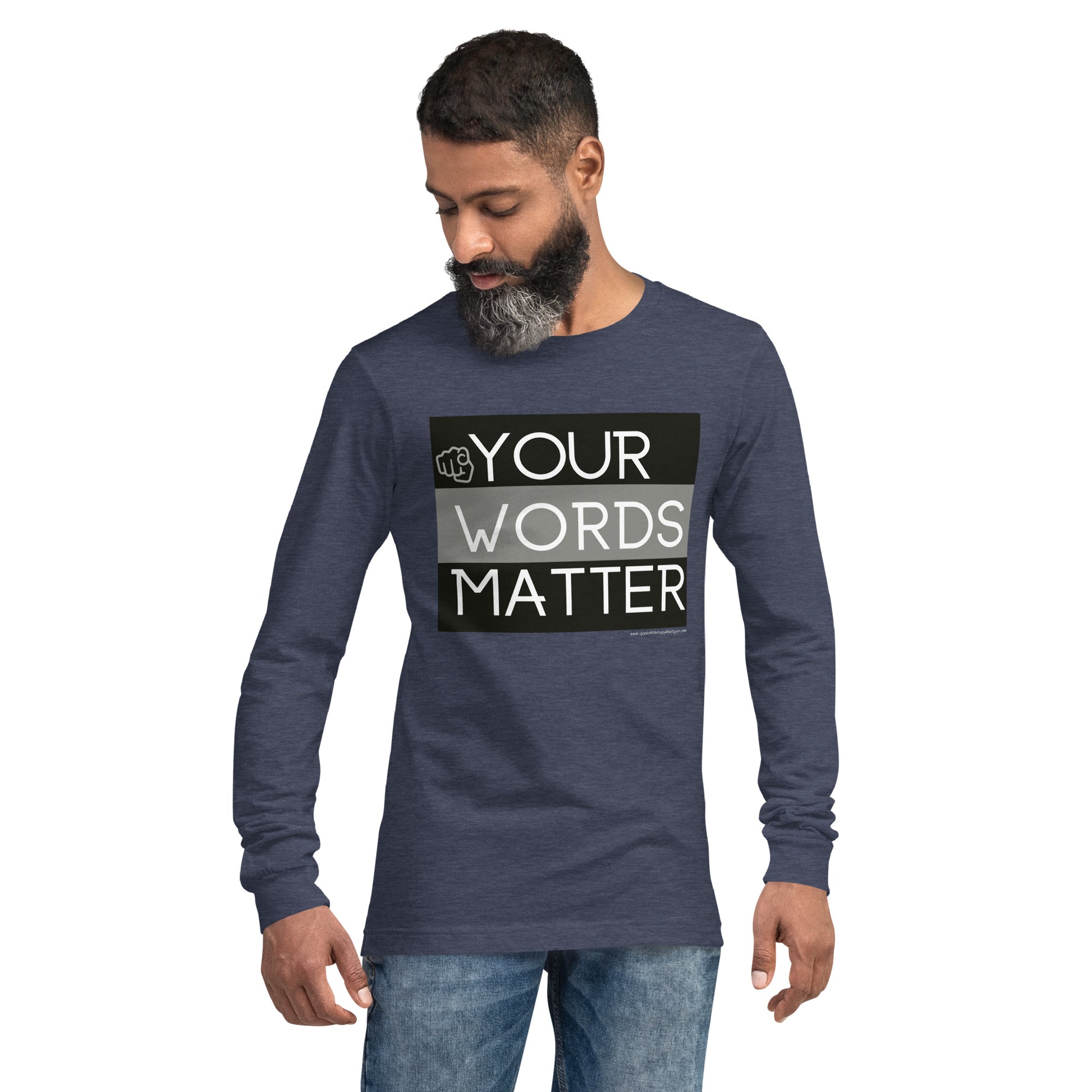Enrich your wardrobe with our Your Words Matter versatile unisex long-sleeve tee. For a casual look, combine it with your favorite jeans, and layer it with a button-up shirt, a zip-up hoodie, or a snazzy jacket. Dress it up with formal trousers or chinos to achieve a more professional look.